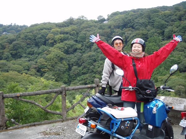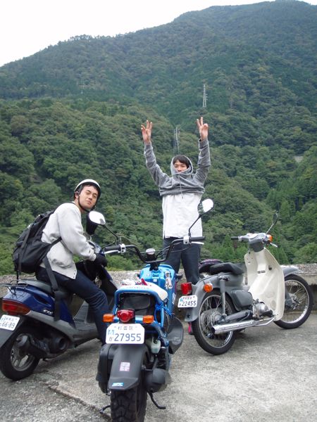 荻窪原付き軍団のやげっちょ☆カウボーイです。 とうとう念願の原付き箱根の旅に行ってきました。 左からチロさん号と虹男号と★号です。 だいちゃん号は今時珍しい免取りのため、今回は不参加。(最後にどんでん返し。) 朝5時すぎ。眠い眼をこすりつつ荻窪の聖地ブックオフに集合。母さんが夜なべして作ったお守りを付けて、シャッターが下りていたので、いつもの香しい中野ブロードウェイ的な匂いは嗅げないまま出発。 早朝の環八を下ります。 早朝ということもあって車も少なくスムーズに・ ・・・・・ ★号がいない。。。 早速はぐれたまとまりのない原付き隊。先行きが不安ですね。 とは言え、すぐに再集合する原付き隊。はぐれっぷりも小市民ですね。 朝焼けに感動。 した覚えはありませんが、とりあえず給油もして 246をひたすら下ります。 自称「尿道筋が発達している」チロさん号がトイレに頻繁に行きたがったのは、きっと薄着だったからでしょう。 朝ご飯は「それしかなかった」マクドナルド。 何年ぶりかのマクドナルドに興味津々の私はなぜかマクドナルドで写真をいっぱい撮りました。 おまけに原付き隊は極度の眠気と疲労(もうですか!!)のため、普通にお茶しに行ったかのごとくマクドナルドでマッタリします。 朝ご飯を食べたらまじめに走り屋家業に精を出します。 どんどんくだって、ついに!! 今年初の海は、秋の海。 海にはサーファーがサーファーらしくサーフィン(主に波待ち)しています。 そんなサーファーを見つめてたたずむ★号とチロさん号。 とってもかっこ良く見えますが、あたいの写真が上手なだけです。(嘘です。) ↑★号はお気に入りのカツラでかっこつけます。 せっかく海に来たので、ビキニと海パンでザブーン!!セヨー!!(無理)と、持参の凧を持って走り回り、持参のフライングソーサーでチロさん号をいじめ、拾ったボールでキャッチボールをしました。 満喫☆ 靴の中が砂でいっぱいになったのも嫌な思、、、いや、いい思い出です。 ところでここでピンチ到来。 尿道菌が発達しているチロさん号のサイドギャザーがアレで横漏れで、小田原手前でバイク屋に立ち寄ります。 まったく心配しているそぶりも見せない★号はその様子を見ながら車組と連絡を取ります。 電話の相手↓二人はラブラブです。 で、急遽、小田原の教会で「幼少時のバナナ探訪の旅」をしていた車組と合流。 ★号と七福神を見に行きましたが、バナナのガセネタのせいで七福神は一体しか見れず。 というわけで合流はあまり意味がなかったので省きます。 小田原から箱根はちょっと道が混んでいましたが、なんなくクリア。 はつ花というお蕎麦屋さんで、Kっちゃんおすすめの山かけ蕎麦(ホット)をいただきます。チロさん号がお誕生日にごちそうしてくれました。ありがと! 混んでいたのでそそくさとお店を後にし、箱根の山道を登ります。 そして★号いきつけのお風呂屋さん、「天山」にて今回初の温泉。 露天風呂がいっぱいで、サウナもあって、ちょっと固めのお湯はきゅっきゅっと汗が出る感じでよかったです。 お風呂から出たら、★号とチロさん号は既にハーゲンダッツを食べ終わり、チロさん号にいたっては、お気に入り(かどうか知らないけど)のロンティーにうんこ、おっと。チョコアイスを嫌というほどベッチョリくっつけてご機嫌のご様子。 思いのほか疲れていたようで、体もあったまって一時間半ほどぐっすり安眠。 温泉は★号がお誕生日のお祝いにくれました。ありがとう! 起きたら今度は山道をぐんぐん登ります。 七曲がりといういろは坂のちっちゃい版みたいの坂をぐんぐん登ります。 ぐんぐん登ってたのは、★号とチロさん号だけで、私の愛しの虹男くんは坂道が苦手のご様子。 めいっぱいあけて40キロ。 ひーひー言ってましたが、無事山道終了。 そうそう、ラッキールーディーズは峠の茶屋的なところで、地鎮祭というラッキーに遭遇。 ここらの地鎮祭では、お餅をなげる習わしのよう。 通りがかりの私たちにも「さあ!さあ!」とご招待してくれます。 ↑調子に乗って参加する原付き隊兄様二人組。 ↑餅投げはこんな感じ。うーん。日本の伝統文化って、なんかテンションがダダ上がりします。かっちょいー。 餅と一緒に、五円玉なんかも投げてて(ご縁がありますように!)とっても痛かったです(笑) 峠の茶屋(?)でお餅を食べます。 幸せ。 幸せすぎてスピーディーな神々。 今夜のお宿は「箱根湯の花温泉ホテル」です。 格安のこのホテル。格安とは思えないホスピタリティを発揮していました。 お部屋も広々。 ビールもついて。 おトイレもきれいで。 温泉も。 シャンプーハットお化けや、 発声練習お化け(このお化けはお化けすぎて写りませんでした。)、ダイチマンスタンダード「セヨー」や、ツーステップお化け(このお化けはお化けすぎて★号には見えませんでした。)、よろしくお願レロレロレロ〜など、お化けも盛りだくさん。 疲れてる時のテンショ